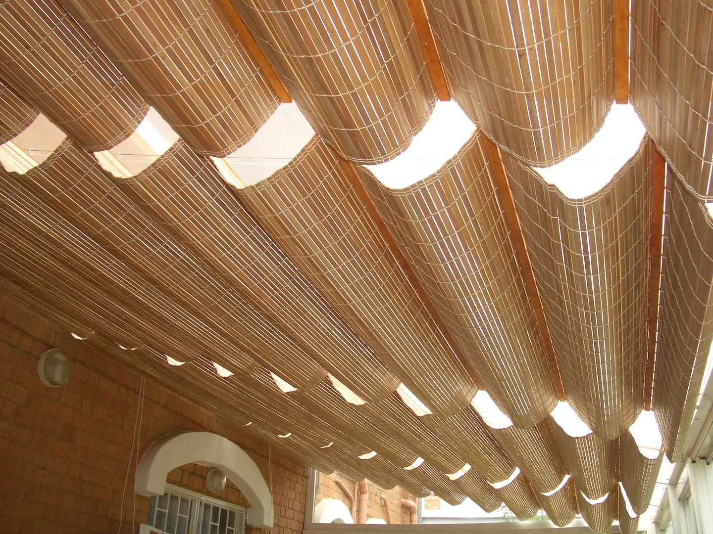 Nous proposons également des faux-plafonds en RAPHIA, pour apporter plus d’ombrage à vos toits vitrés.
